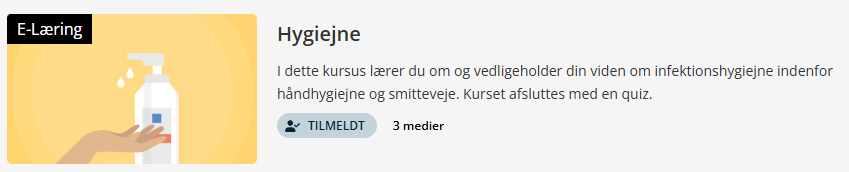 Du finder alt e-læring der omhandler hygiejne i Plan2Learn (P2L). Du skal se e-læringen som en del af kompetencen "Grundlæggende sundhedsfaglige introduktion".