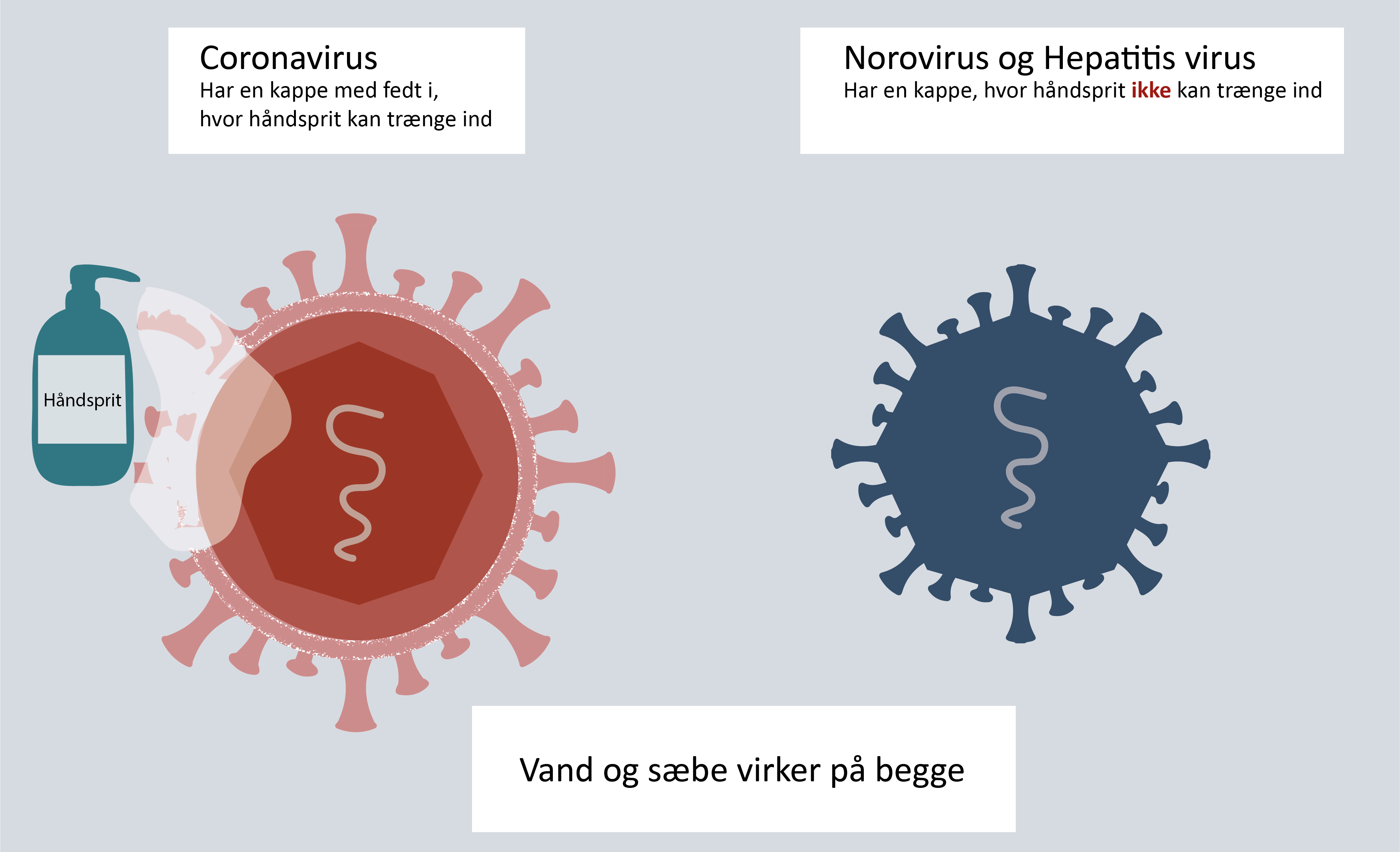 Norovirus er IKKE følsom overfor alkohol, derfor er det meget vigtigt at få vasket hænderne med vand og sæbe.