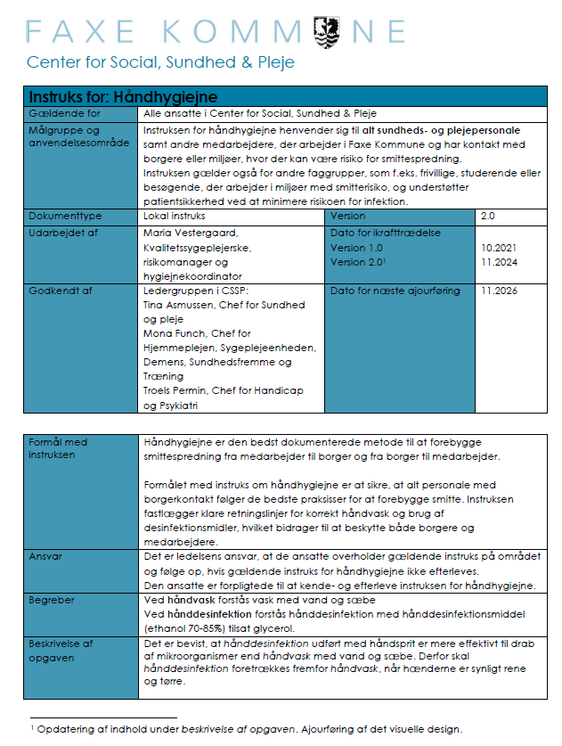 Her på siden finder du alle instrukser der omhandler hygiejne. Vil du vide mere om hygiejne, så gå til topfanen HYGIEJNE.